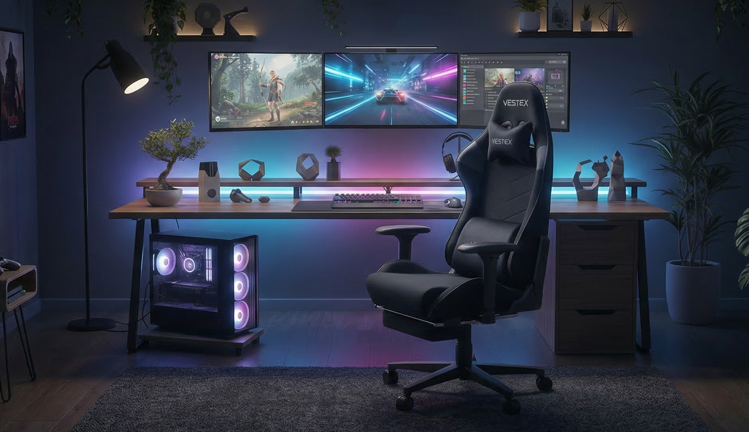 VESTEX ゲーミングチェア ブルー メッシュファブリック フットレスト付 VES-S2FTBL